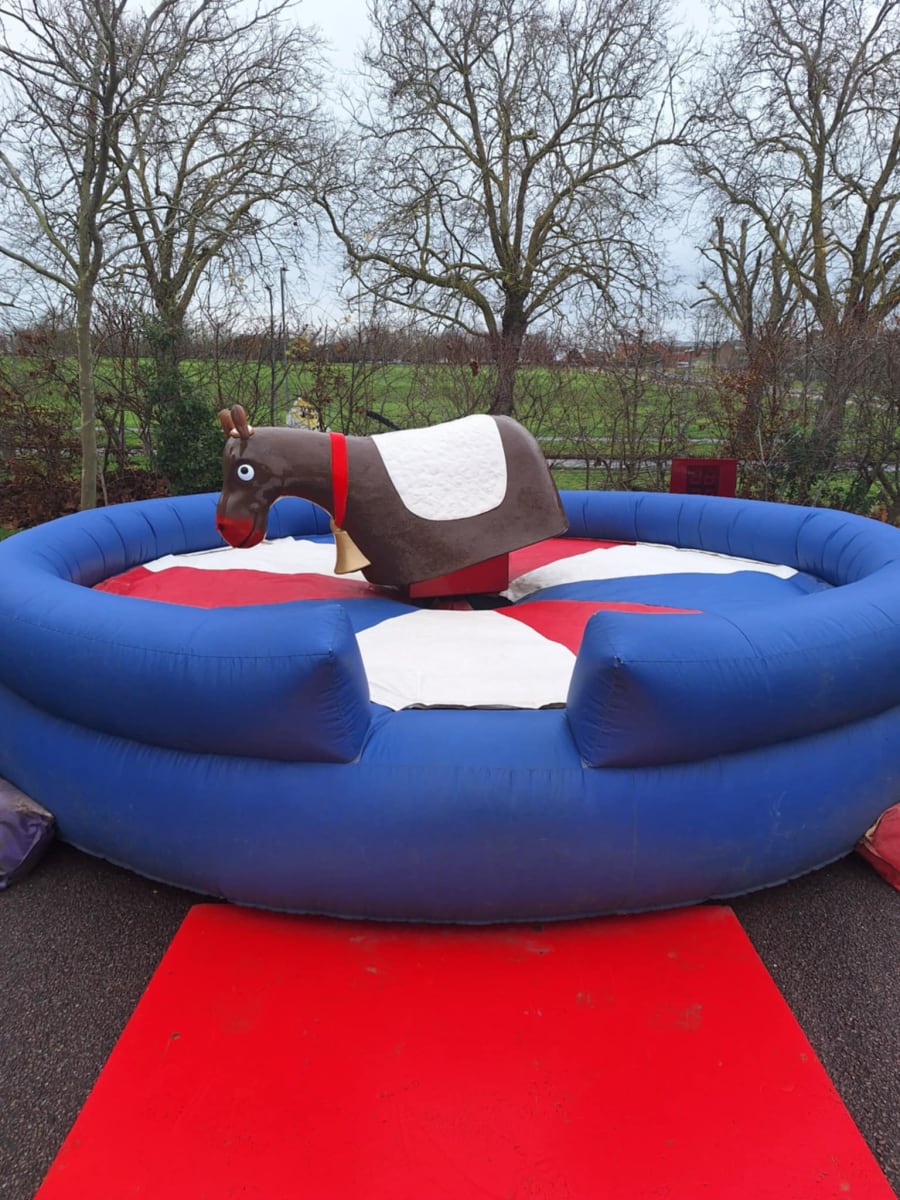 Bring bold, safe, laugh-out-loud entertainment to your event with our Rodeo Reindeer for hire. This festive mechanical ride adds a Christmas twist to classic rodeo action. Hold tight to Rudolf as he bucks and spins. When you fall, you land on a soft bouncy base. Fun for kids and adults. Perfect for parties, corporate events, and shopping-centre light switch-ons. 🎉