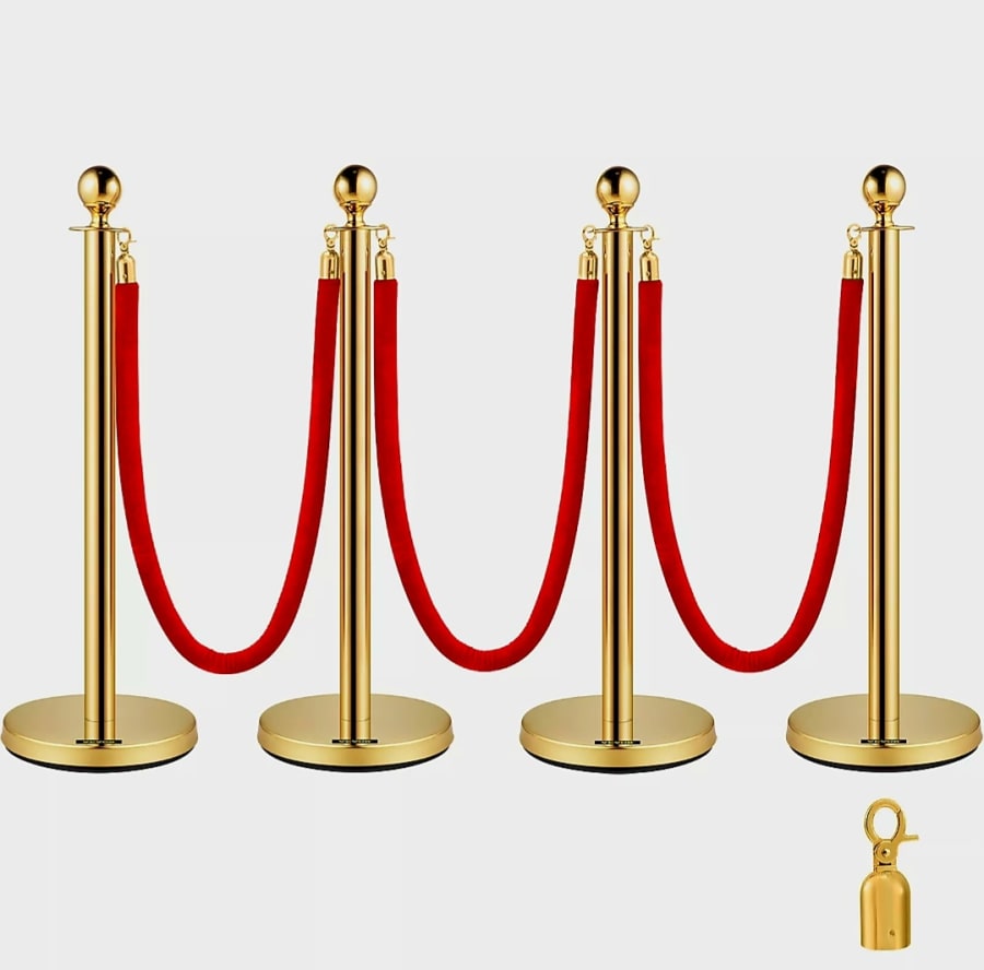 Gold barrier poles and red rope hire.