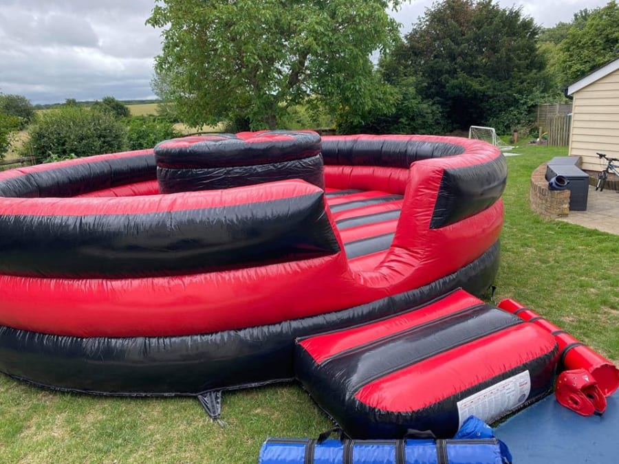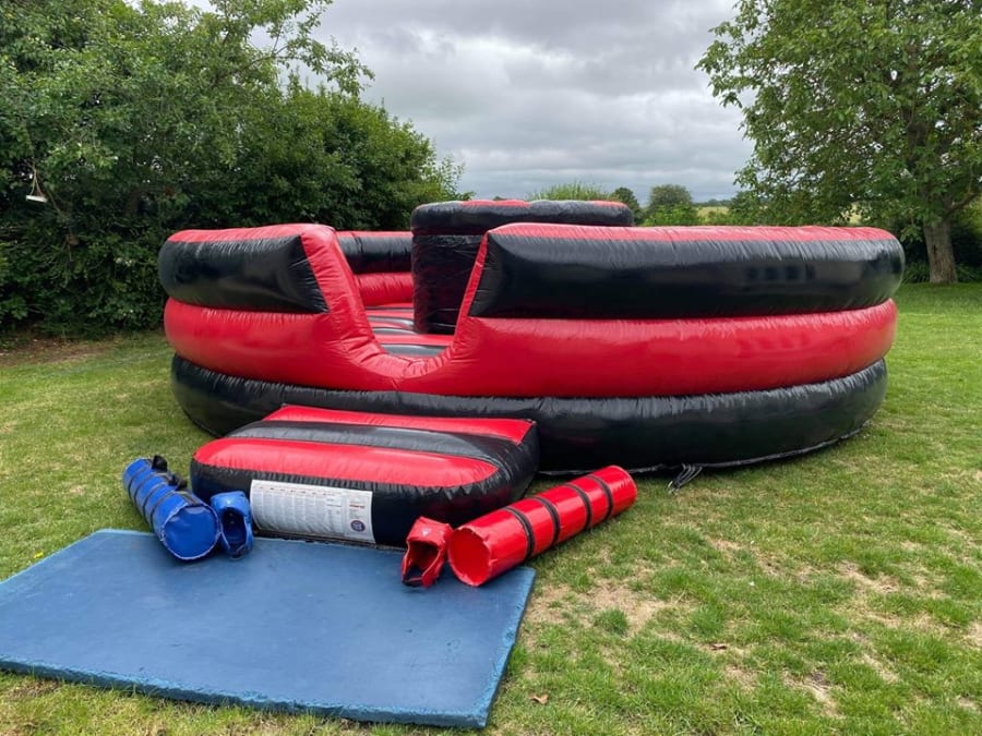 This new inflatable game has been designed with a ground breaking inflatable mechanism that makes the base rock from side to side and front to back which challenges the balance during the " jousting tournament".
