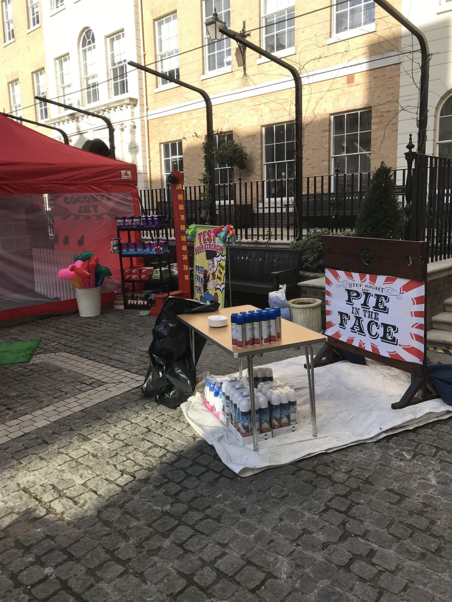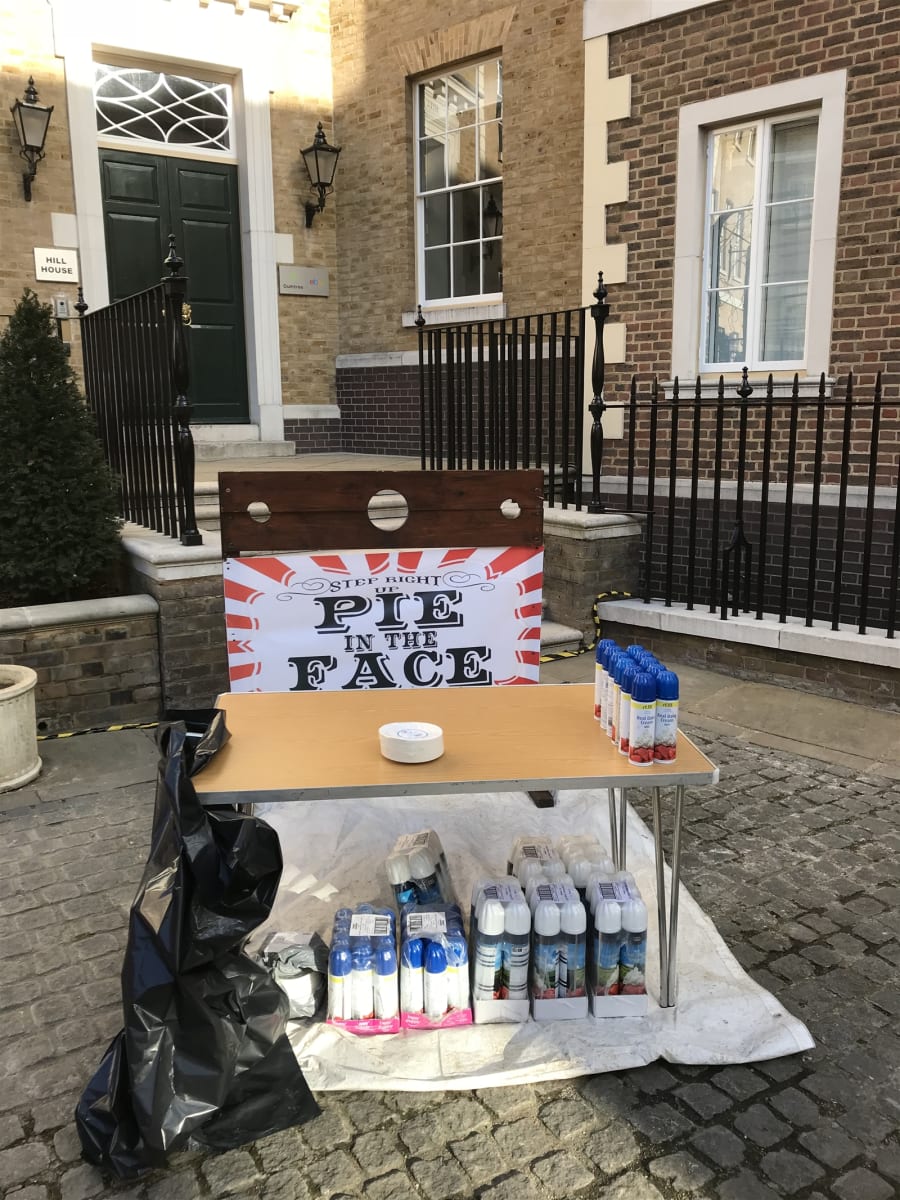 Pie in your face stocks for hire.