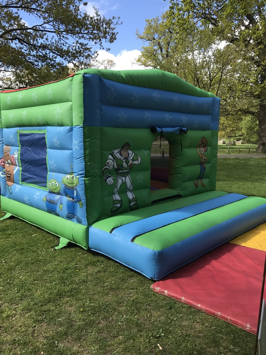 Rent Our 12ft x 15ft Toy Story Themed Bouncy Castle for a Thrilling Experience in Great Bentley, Elmstead Market, Greenstead, Highwoods, Old Heath, Brightlingsea, Clacton, Sudbury, Marks Tey, Eight Ash Green, Great Horkesley, Kelvedon, Maldon, Braintree, Chelmsford, Witham, Halstead, Harwich, West Mersea, Tiptree, Coggeshall, Wivenhoe, and Silverend! 🎉