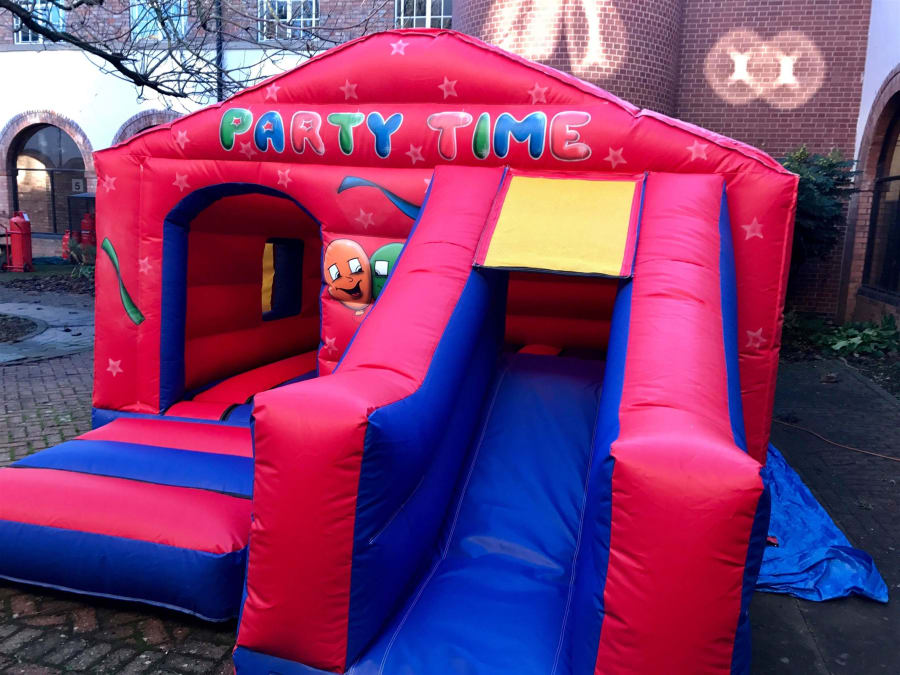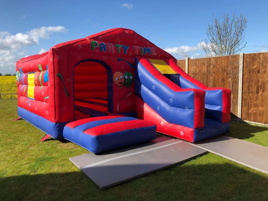 The New Party Time Bouncy Castle With Slide For Hire In Colchester, Essex Maldon, Braintree, Witham Halstead, Harwich, Clacton, Chelmsford, West Mersea, Tiptree, Coggeshall, Marks Tey, Wivenhoe, Brightlingsea, Essex, Silverend, Kelvedon.